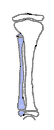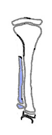 Bei Typ Ib ist dieser Teil des Wadenbeines nicht auf dem Röntgenbild zu sehen.